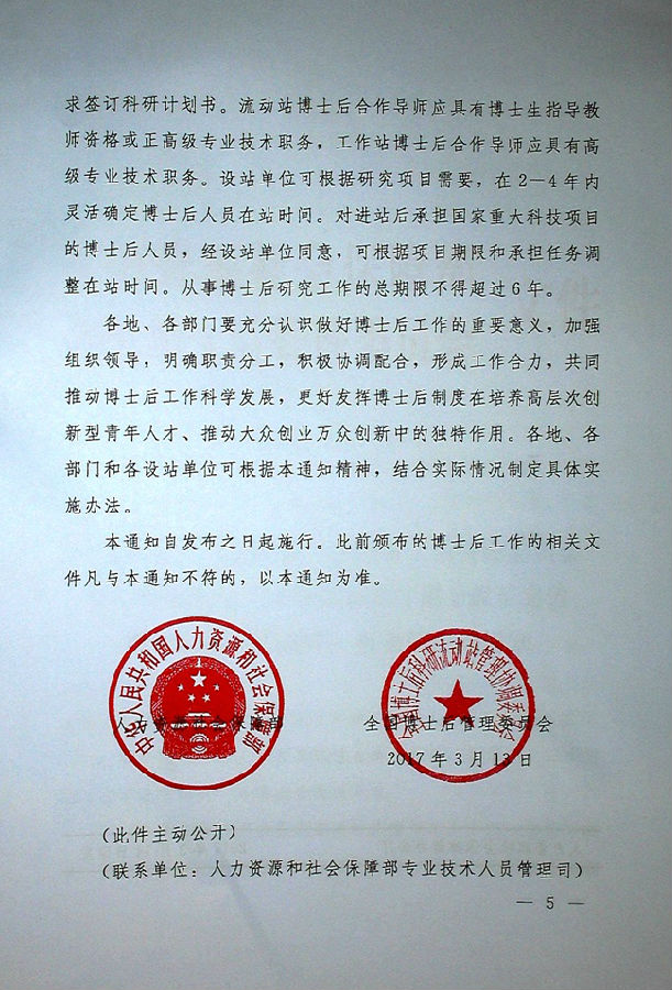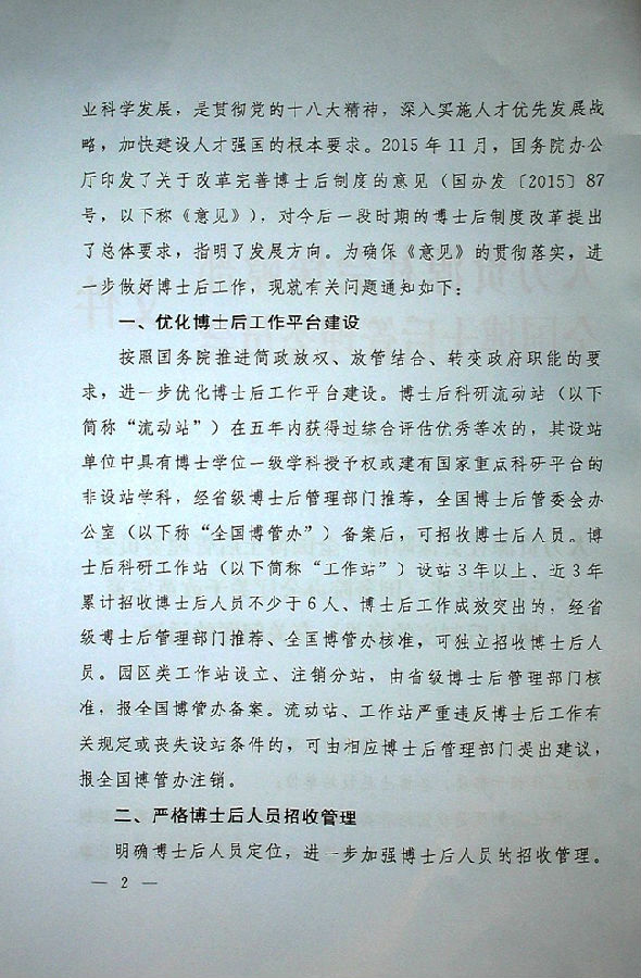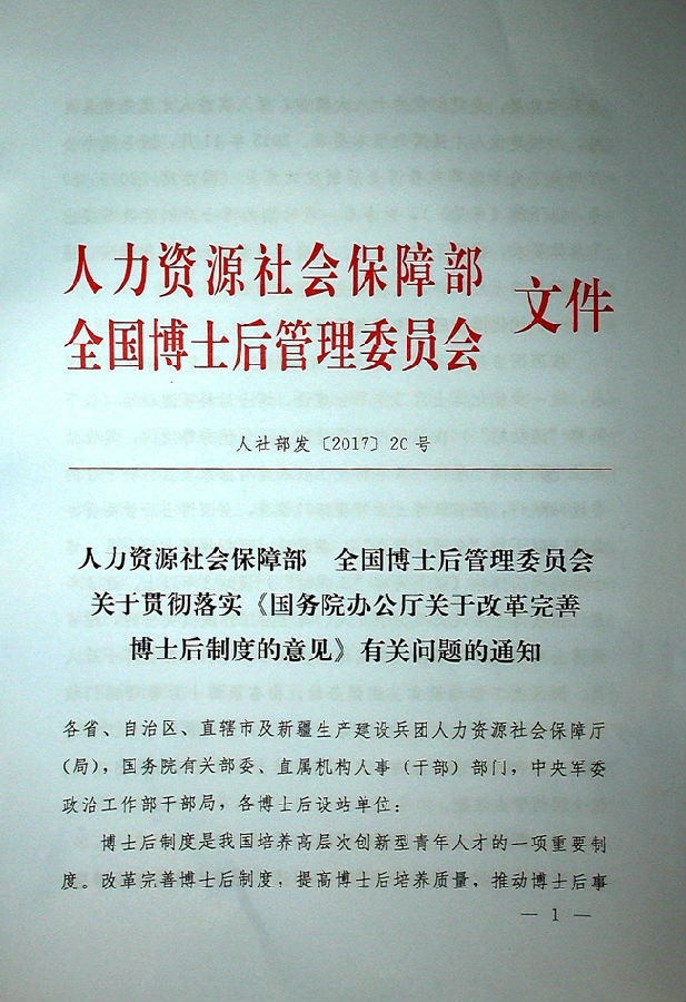 【人才建设】关于贯彻落实《国务院办公厅关于改革完善博士后制度的意见》有关问题的通知